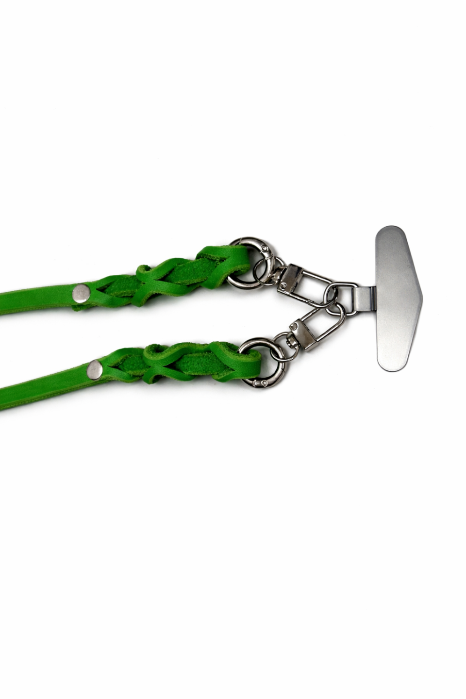 Handyband Leder mit Patch in silber/grasgrün