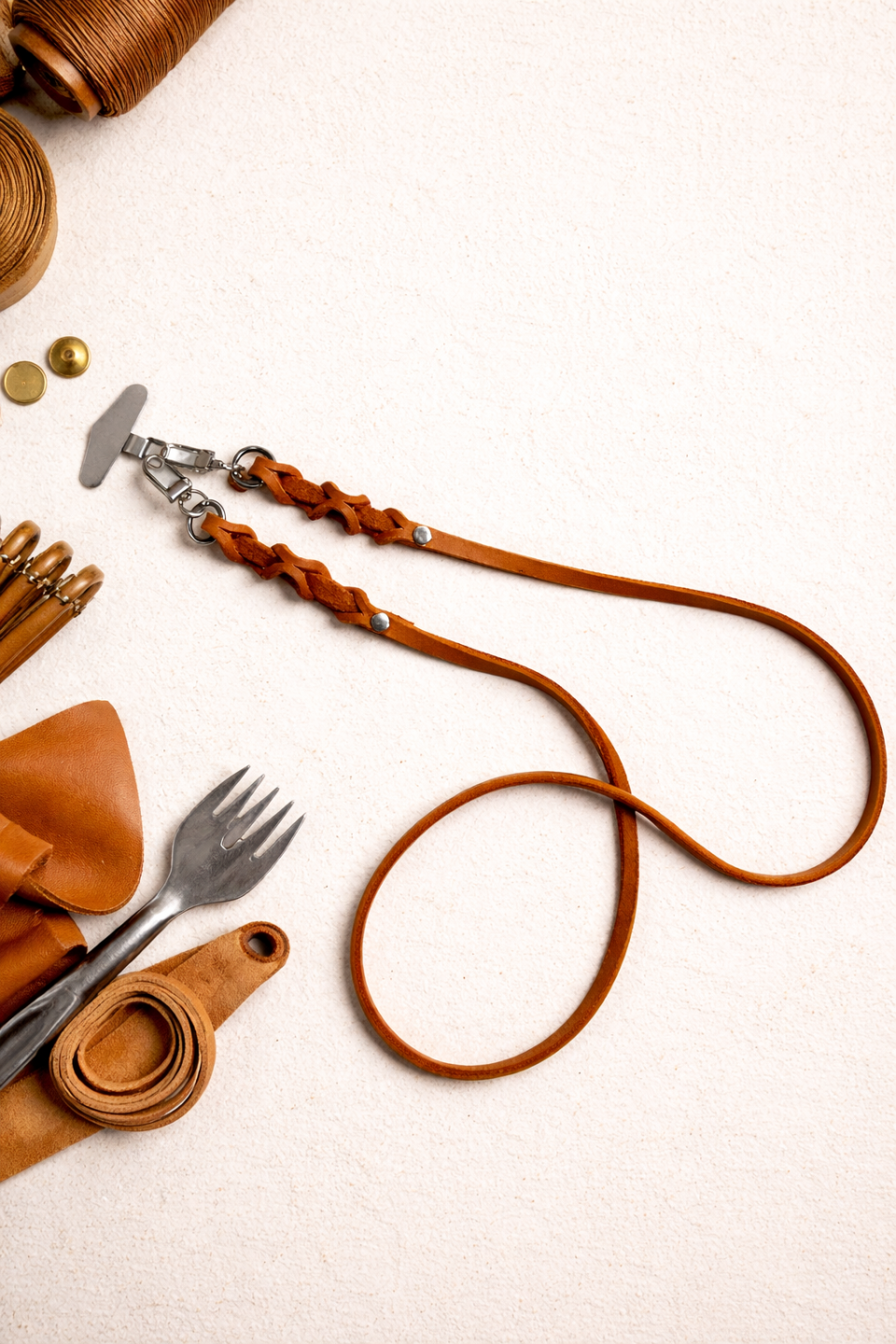 Handykette aus strapazierfähigem Fettleder in 8 mm Breite. Die natürliche Lederstruktur sorgt für einen authentischen Look und ein angenehmes Tragegefühl. Der goldfarbene Karabiner ermöglicht eine einfache und sichere Befestigung.