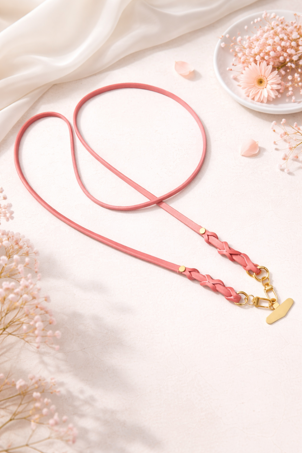 Handyband Leder mit Patch in gold/lachs-altrosa