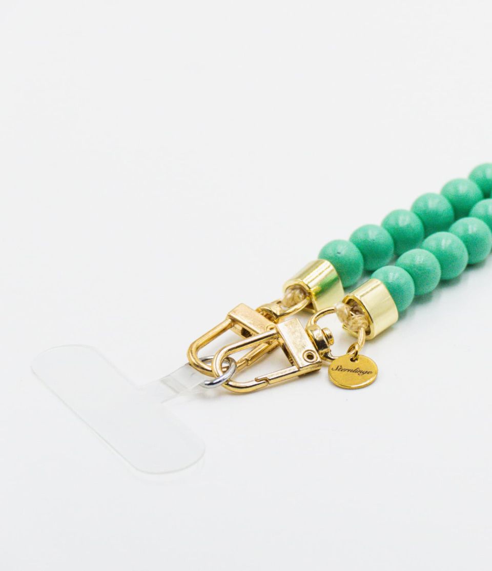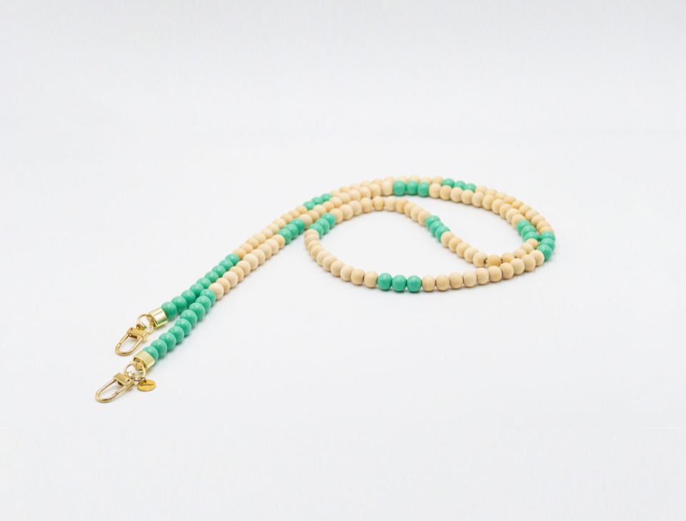 Handykette aus Holzperlen mit Patch in mint