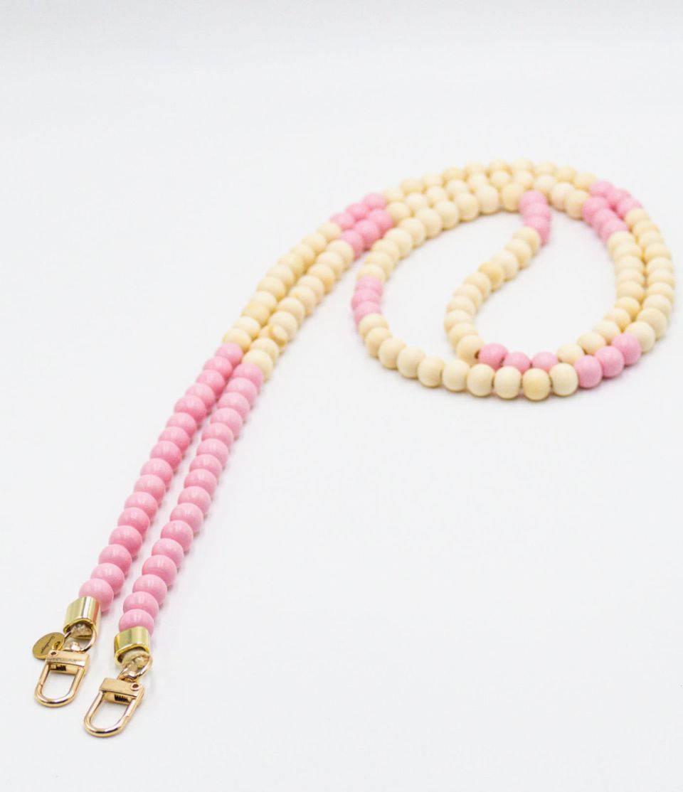 Handykette aus Holzperlen mit Patch in rosa