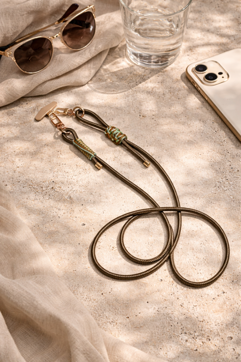 Diese handgefertigte Handykette verbindet Stil und Funktion.