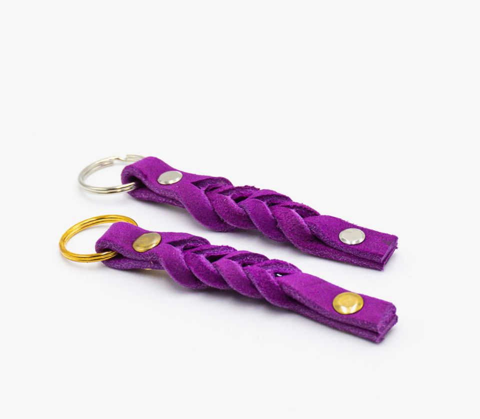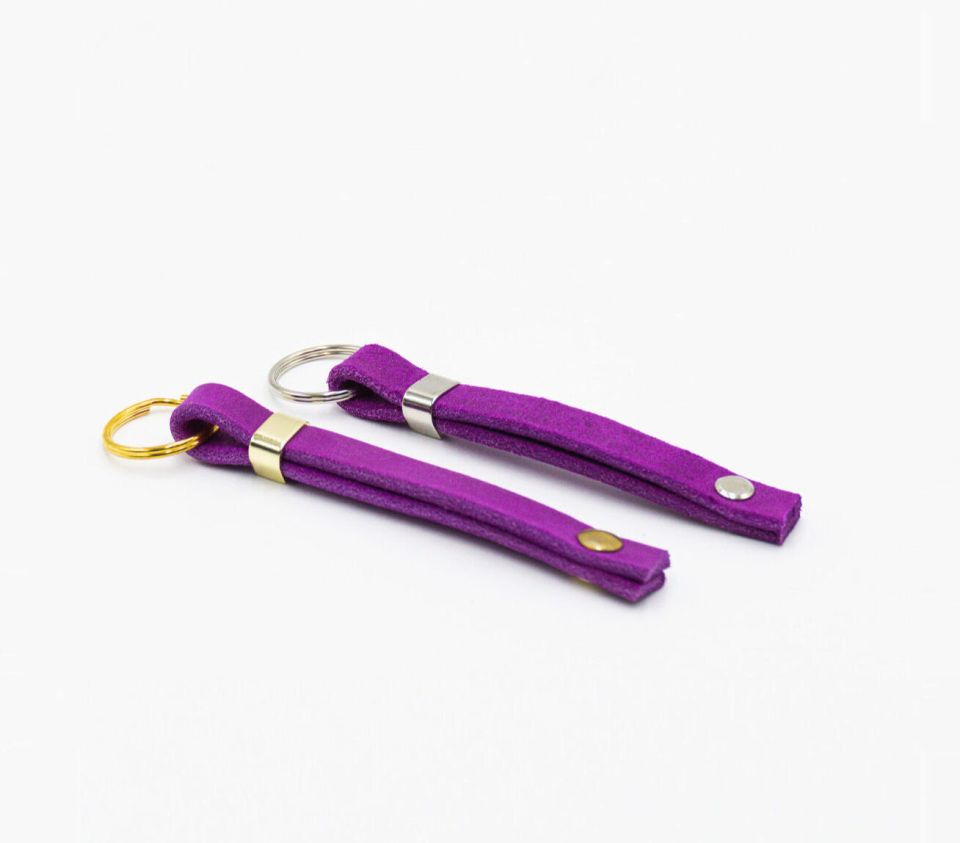 Das handgemachte Leder-Schlüsselband in Lila mit einem Ring in einer Länge von ca. 12 cm bietet eine stilvolle Möglichkeit, Schlüssel sicher aufzubewahren.