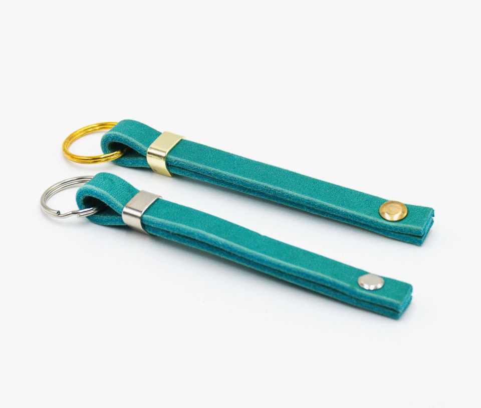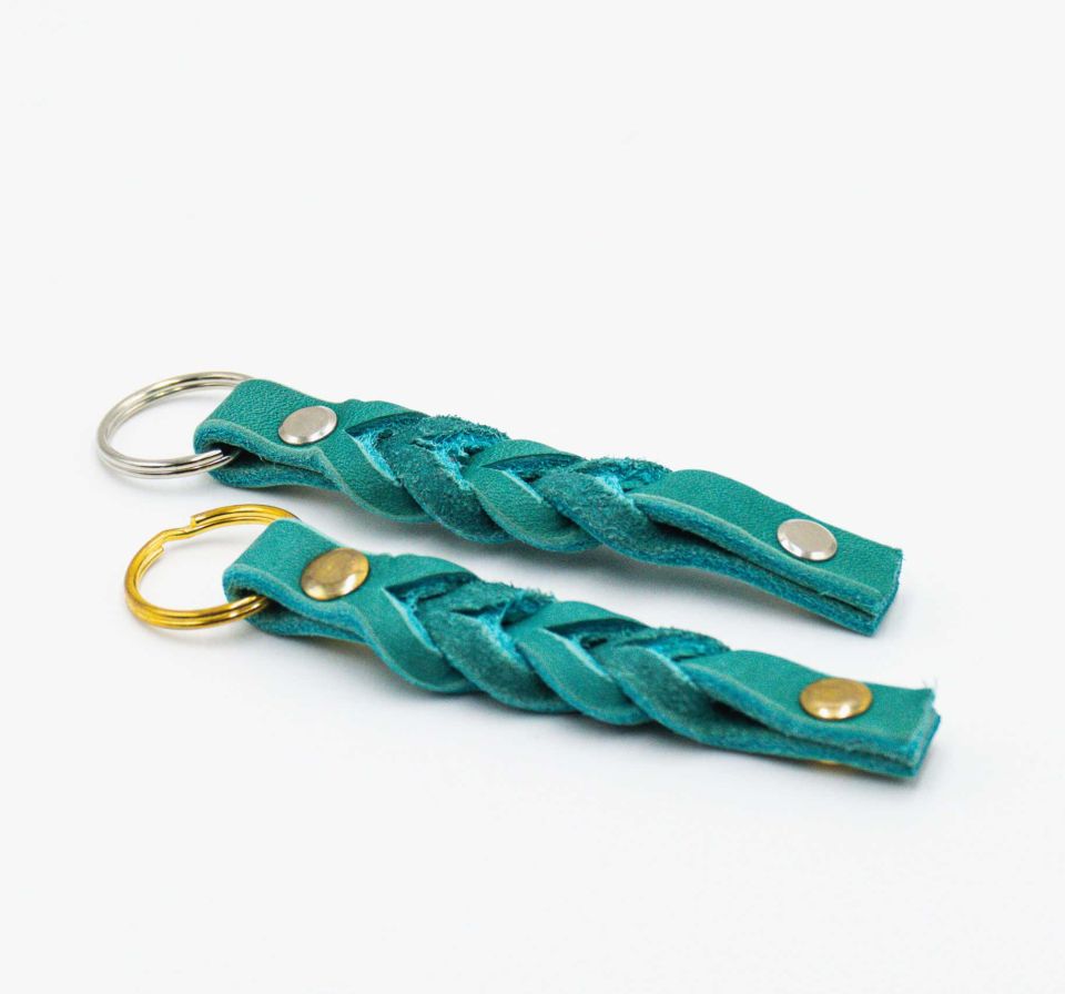 Schlüsselanhänger aus Leder in petrol