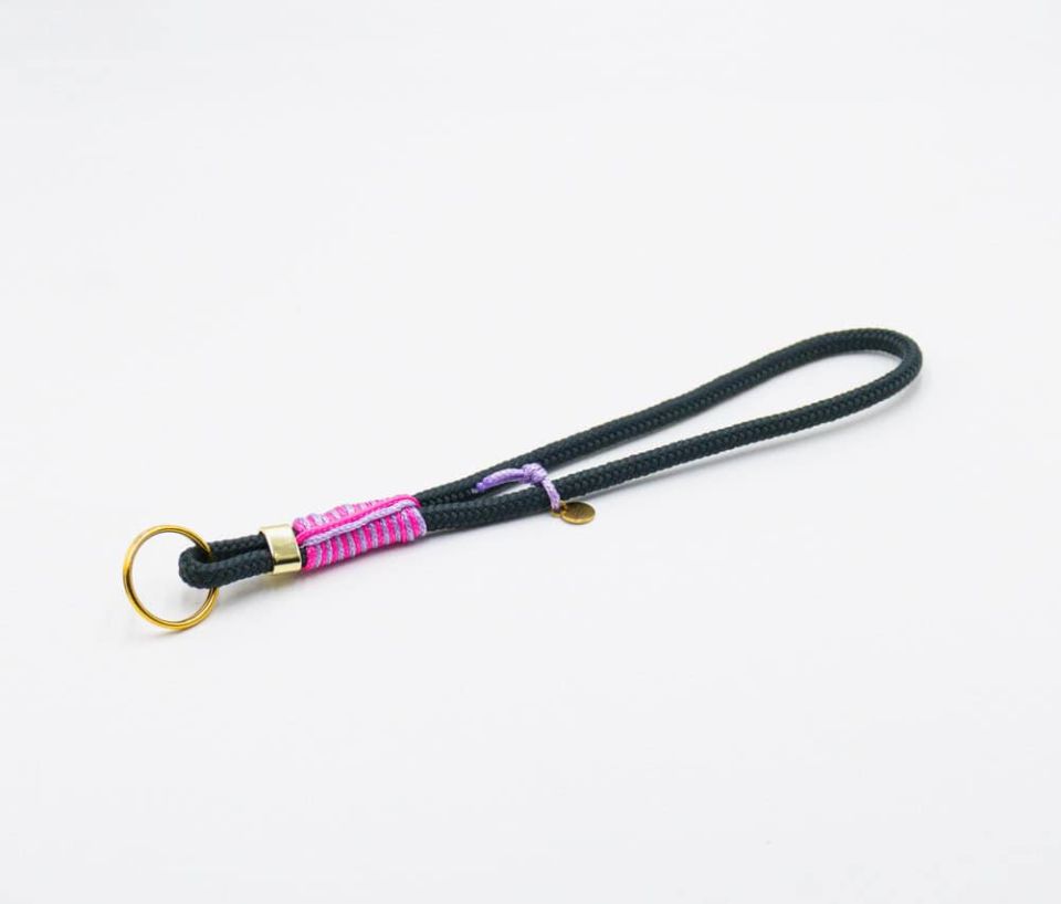 Der Schlüsselanhänger/Schlüsselband ist in Anthrazit erhältlich und verfügt über einen goldenen Ring.