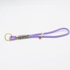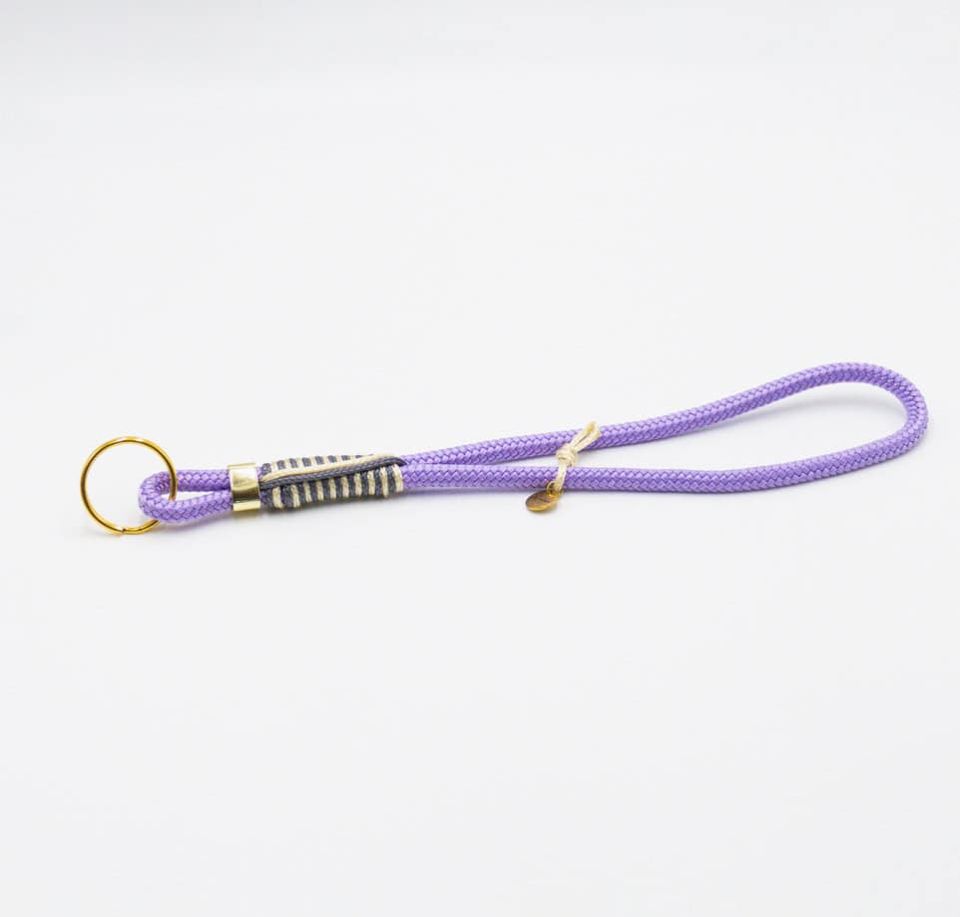 Der Schlüsselanhänger/Schlüsselband ist in Flieder erhältlich und verfügt über einen goldenen Ring.