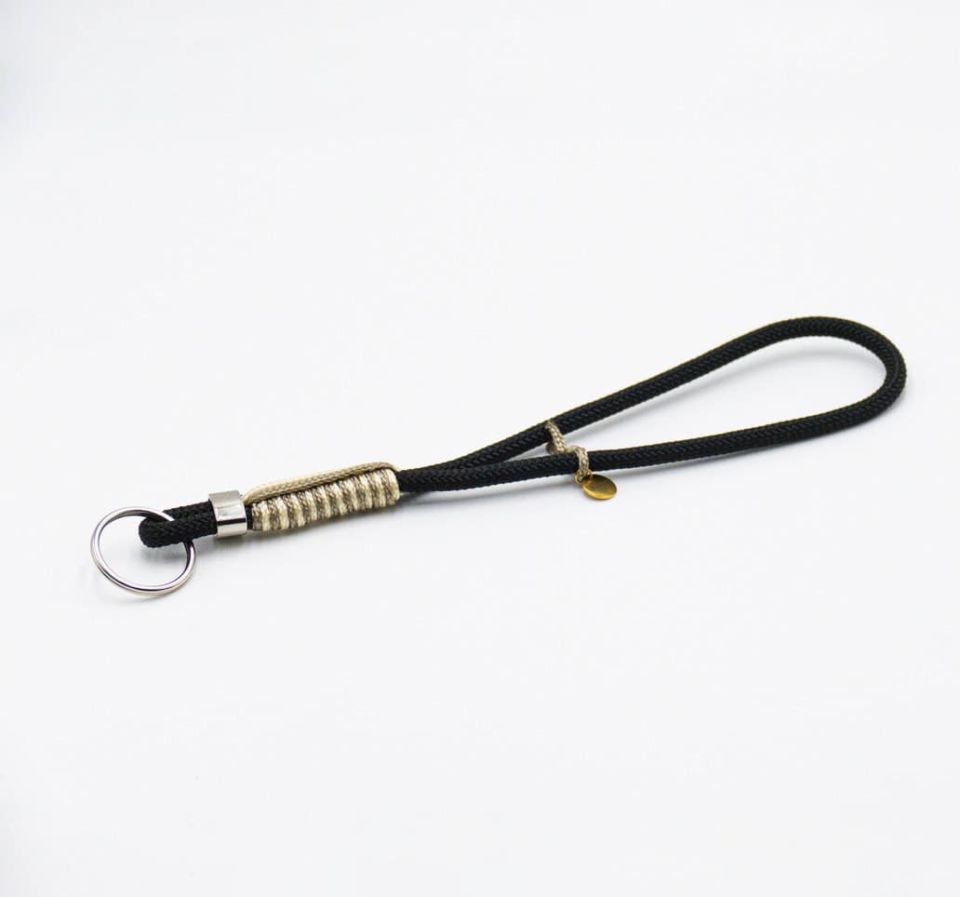 Der Schlüsselanhänger/Schlüsselband ist in Schwarz erhältlich und verfügt über einen silbernen Ring.