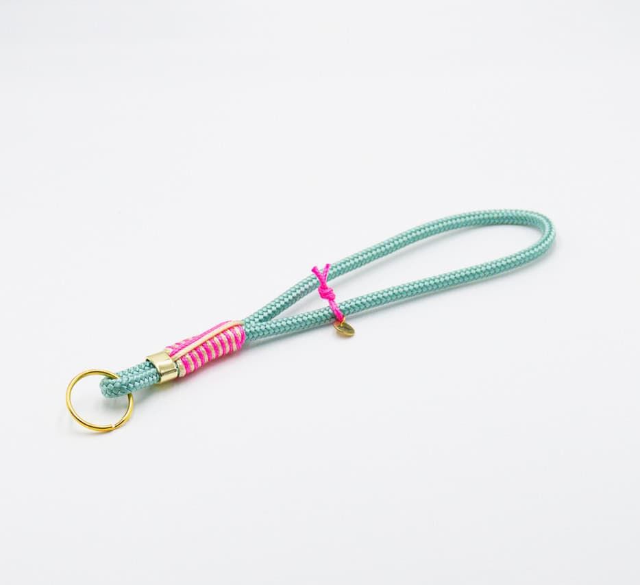 Der Schlüsselanhänger/Schlüsselband ist in Sea – Grün erhältlich und verfügt über einen goldenen Ring.